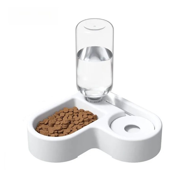 Dispenser automat mancare si apa animale NEXTLY, pentru pisici si caini de orice talie, compartimentare separata, rezervor transparent cu capac, capacitata apa 1l, capacitate hrana 2.8l, material ABS, non-toxic, alb-negru