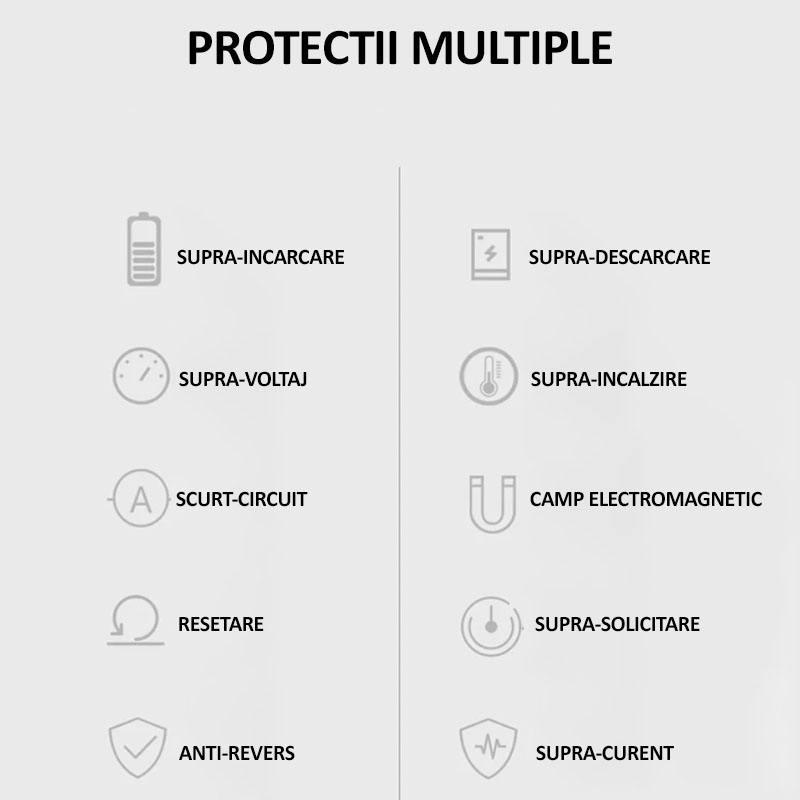 - Echipata cu protectii impotriva supratensiunii, supracurentului, supraincalzirii si scurtcircuitului, si nu numai, pentru a va mentine dispozitivele in siguranta in timpul incarcarii.