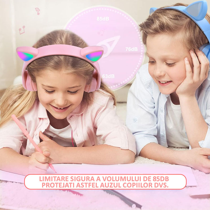 Cu urechi de pisica integrate si iluminare LED, aceste casti aduc un element captivant in experienta auditiva a copilului dvs. Confortabile