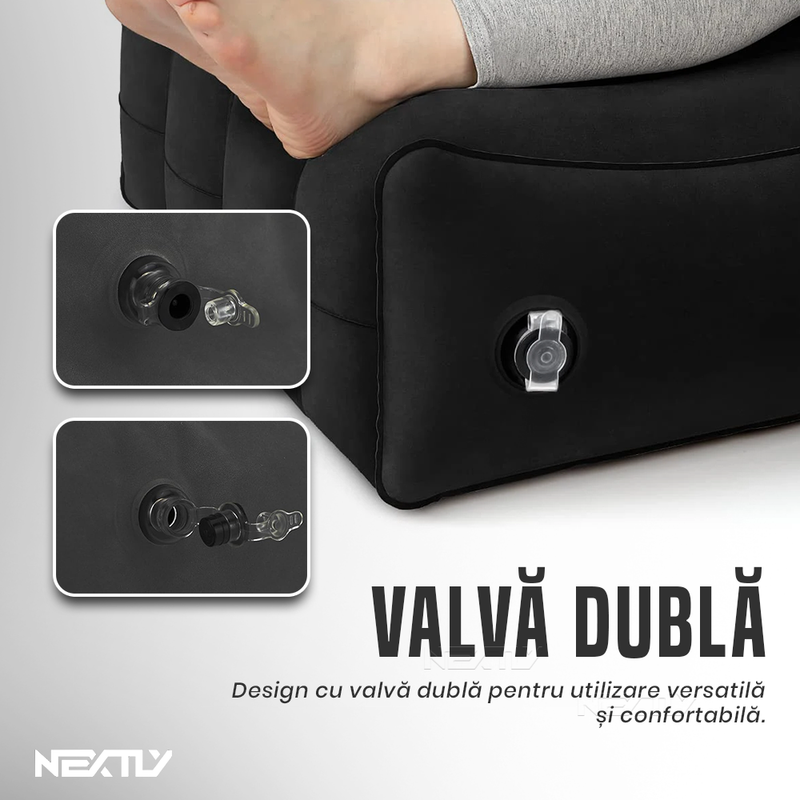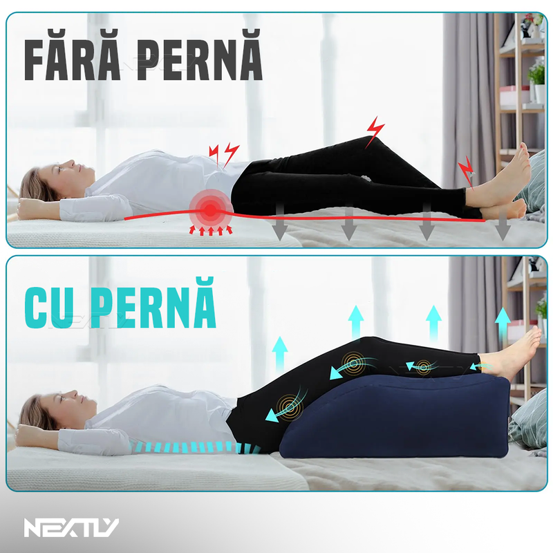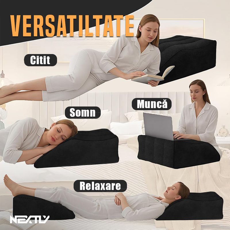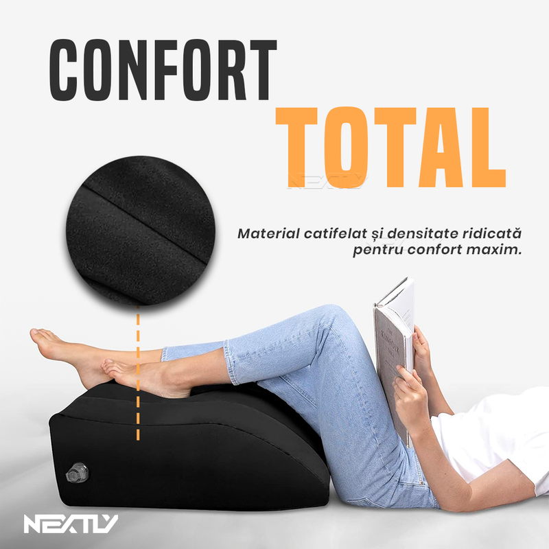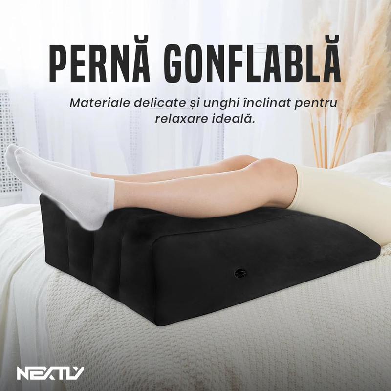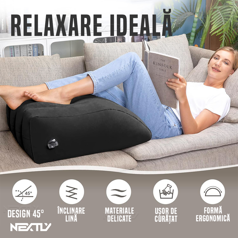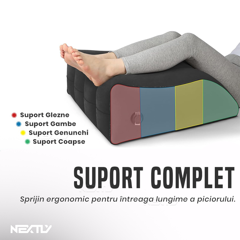 Inclinare la 45° – Perna este proiectata cu o inclinare de 45°, un unghi ideal pentru sustinerea picioarelor si relaxarea musculaturii. Aceasta pozitie contribuie