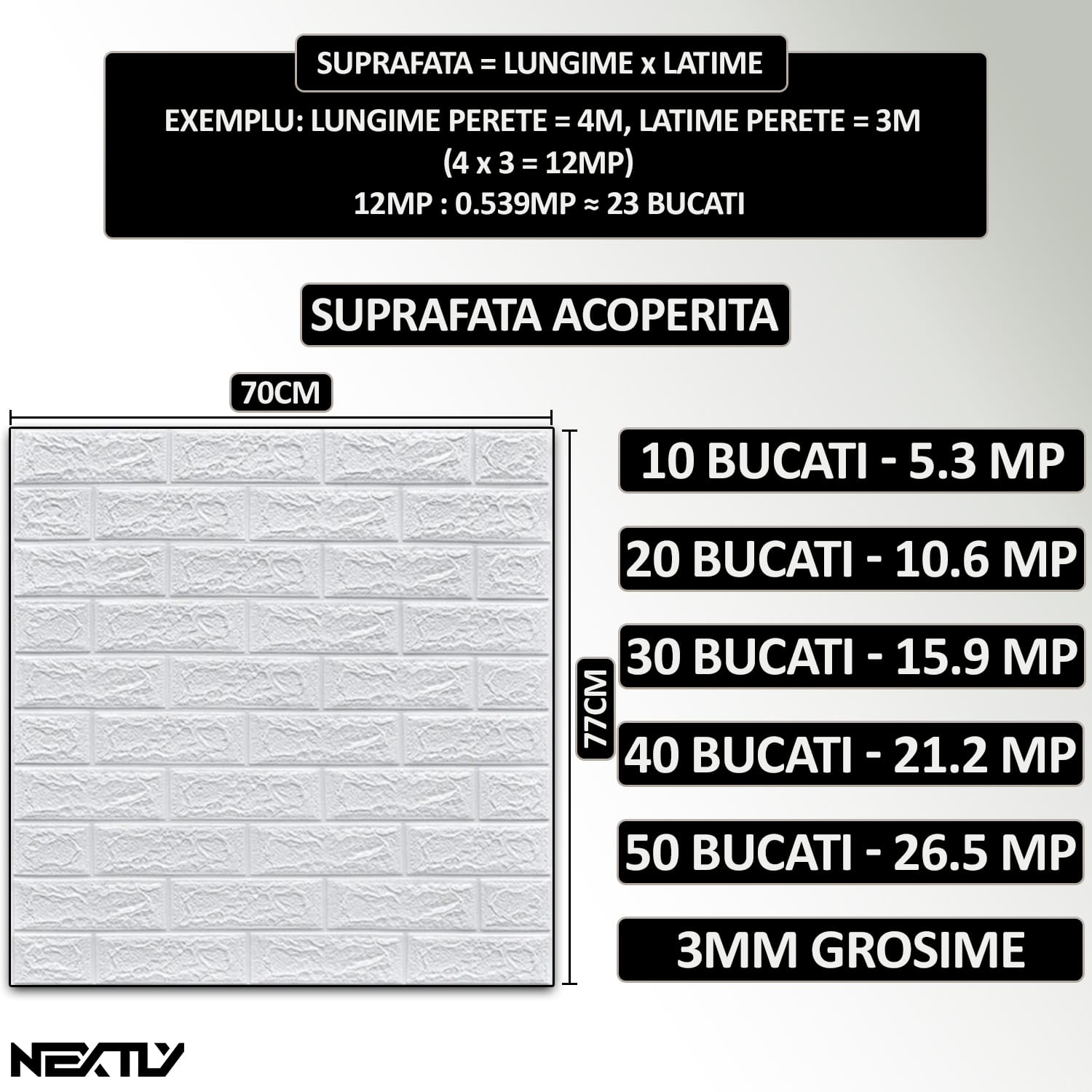 1 recenzie pentru Set 10 x tapet autoadeziv 3D NEXTLY, pentru tavan/perete, design caramida, waterproof, ajustabil, adeziv puternic, usor de montat, suprafata acoperire 5.3MP, 70×77 cm, alb, cod 1