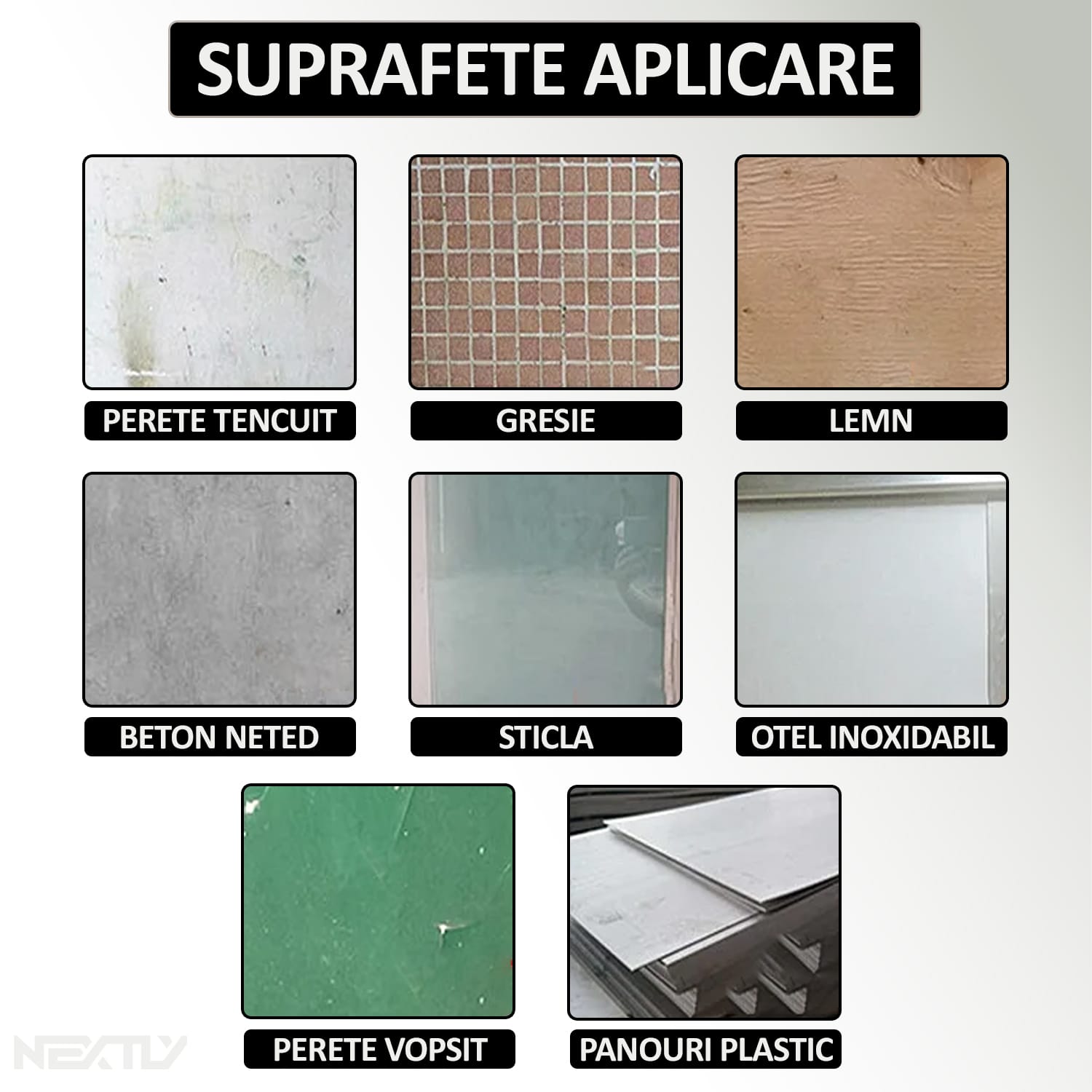 NOTA! Asigurati-va cu suprafata este pregatita corespunzator inainte de aplicare pentru a obtine rezultate optime.