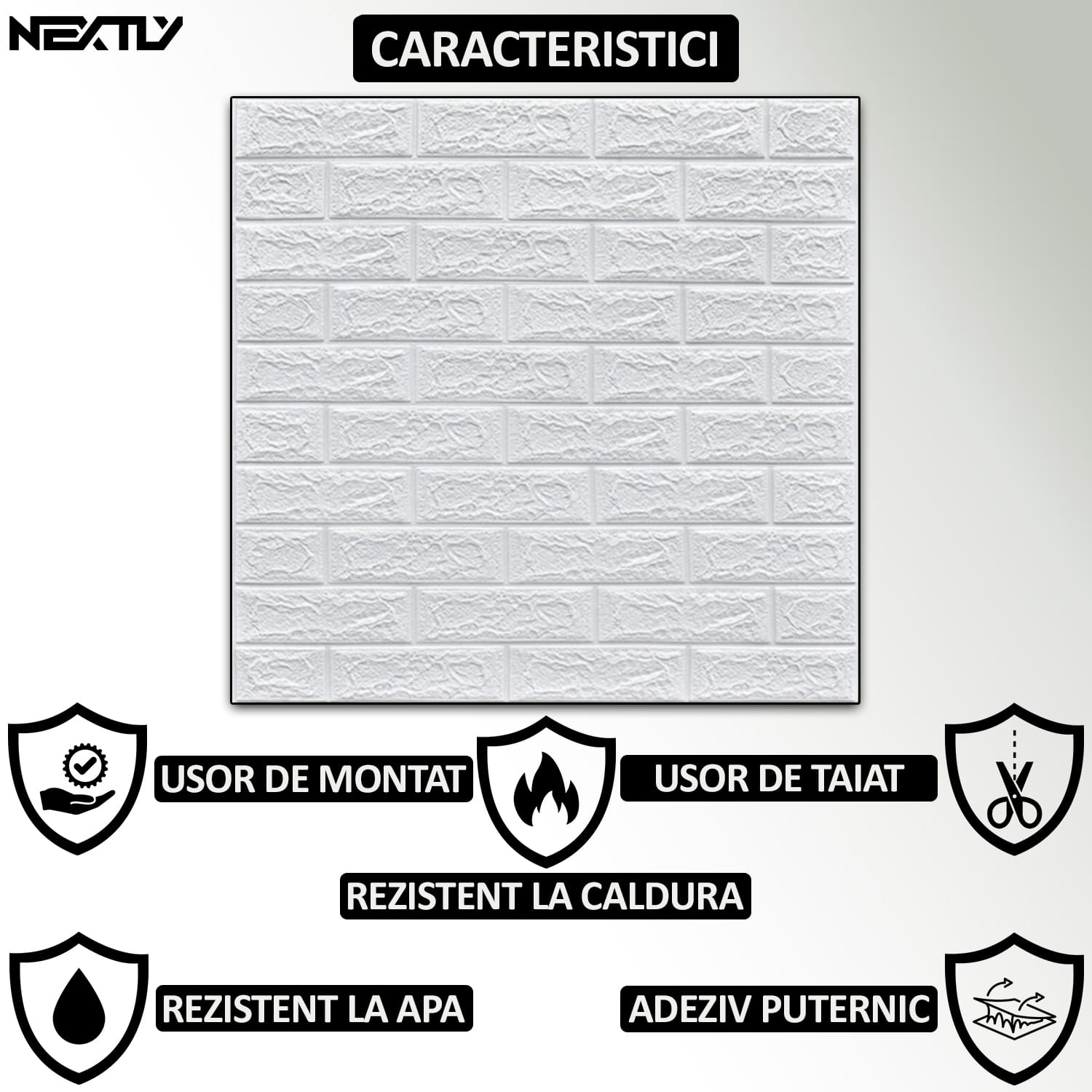 Set 10 x tapet autoadeziv 3D NEXTLY, pentru tavan/perete, design caramida, waterproof, ajustabil, adeziv puternic, usor de montat, suprafata acoperire 5.3MP, 70×77 cm, alb, cod 1