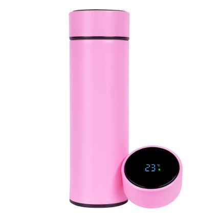 Termos cu afisaj digital temperatura NEXTLY, ecran tactil, protectie IPX7, izolare puternica, filtru ceai, otel inoxidabil, 500ml, 22.5×6.5cm, roz