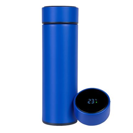 Termos cu afisaj digital temperatura NEXTLY, ecran tactil, protectie IPX7, izolare puternica, filtru ceai, otel inoxidabil, 500ml, 22.5×6.5cm, albastru
