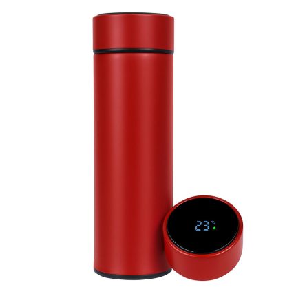 Termos cu afisaj digital temperatura NEXTLY, ecran tactil, protectie IPX7, izolare puternica, filtru ceai, otel inoxidabil, 500ml, 22.5×6.5cm, rosu